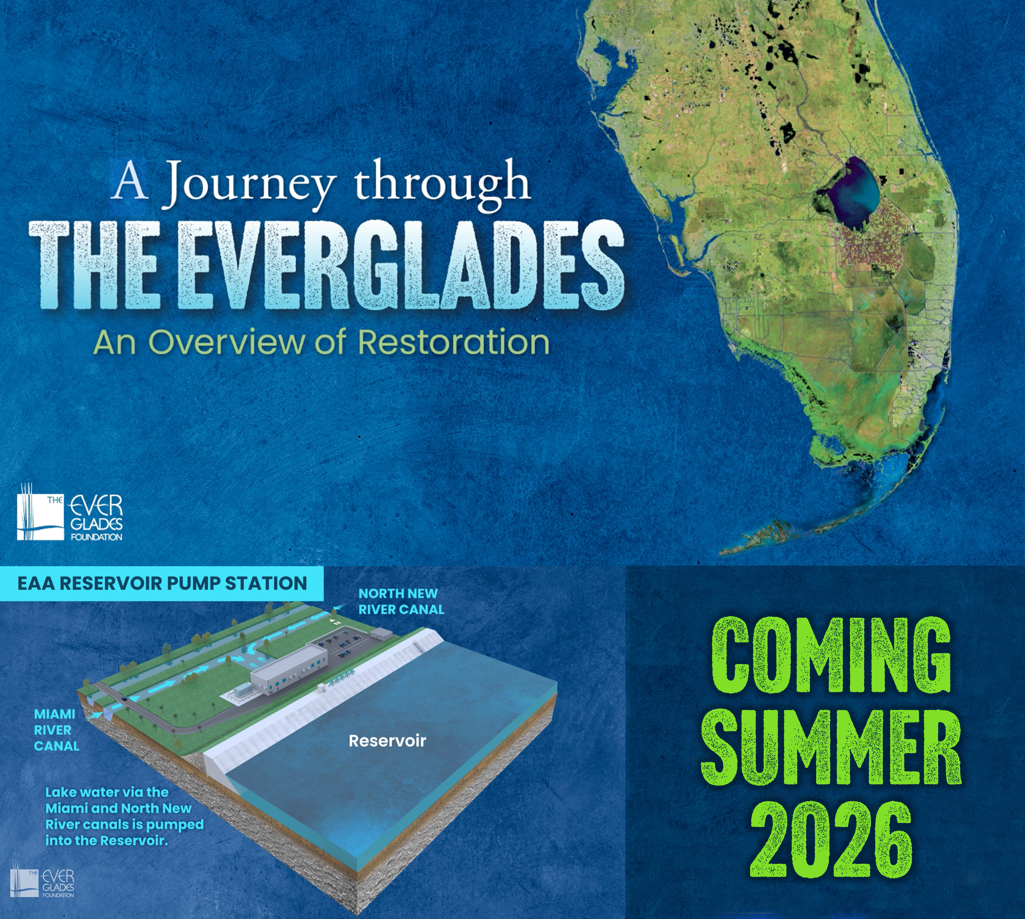 Illustrated graphics and animation for a video highlighting a journey through the Everglades and the benefits of restoration.